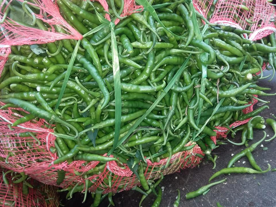 Green chilis are the best kitchen ingredient to bring a dash of spiciness to recipes. The fresh flavor and sharp bite make them a must in almost all Indian dishes. This particular green chilly variety is big.